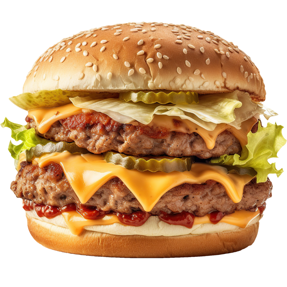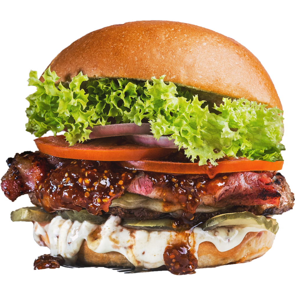Indulge in smoky goodness with a flame-grilled beef patty, topped with crispy bacon, melted cheddar cheese, caramelized onions, and a smattering of tangy BBQ sauce.